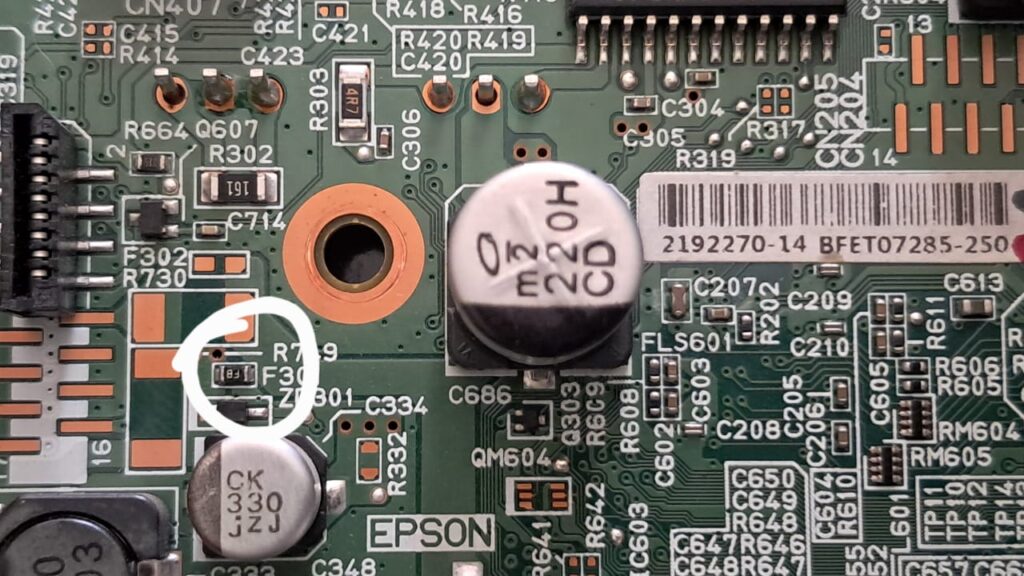 Cuando una impresora Epson L6171 no enciende o no responde al conectarla, uno de los primeros puntos que debes revisar es el fusible F301 de la placa principal.